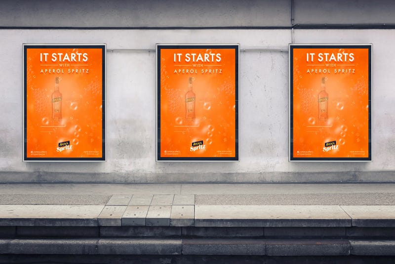 More recently, the "It Starts With Aperol Spritz" campaign, was launched circa 2017 to emphasise the simplicity and appeal of the Aperol Spritz recipe.