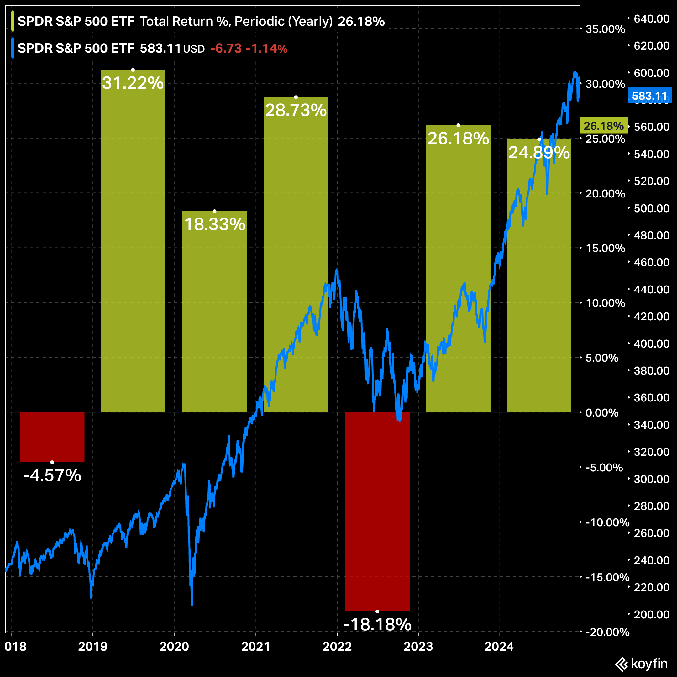 To this day, there are industries still feeling the hangover of the turbulence in supply and demand dynamics from the pandemic. Yet, by 2024, the economic situation looked relatively stable once again. Inflation, which peaked at 9.10% in June 2022, was back in the 3% range. Unemployment had gradually declined from the pandemic highs of 14.70% in 2020 and was now oscillating around the mid 3% range. Corporate earnings had turned a corner, and the semiconductor and AI narrative had begun to sweep across markets, concocting Wall Street’s latest distraction. After declining by 18% in 2022, the S&P 500 recorded annual returns of 26% and 25% in 2023 and 2024, respectively. By the time that President Donald Trump reminded markets of his recurring tariff fetish in February 2025, it was as though the pandemic was long forgotten. There was a new panic in town.