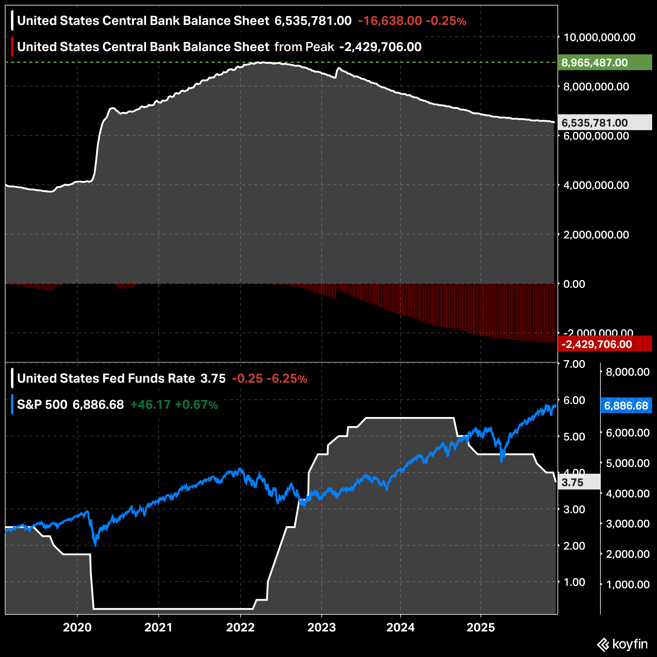 Examine the chart below, which displays the Federal Reserve balance sheet, the level of the S&P 500, and the Federal Funds Rate since 2020. You can bear witness to the striking correlation between the Fed’s actions and the S&P 500.