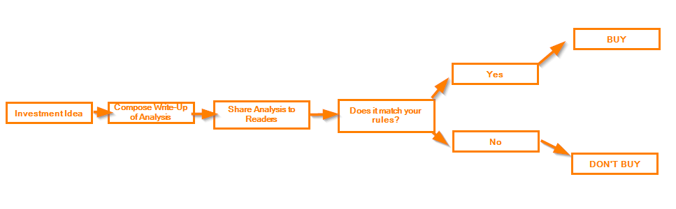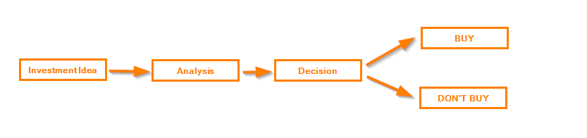 You will see below a fairly rudimentary decision making process. The diagram illustrates an un-accountable investment decision. The idea is sparked, the analysis is conducted, a decision is made, and the investor will then proceed to buy/sell or do nothing.